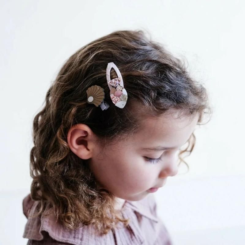 メタリックゴールドのソフトレザーレット生地から作られた貝殻