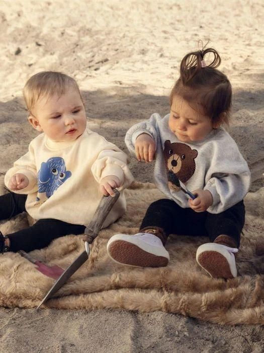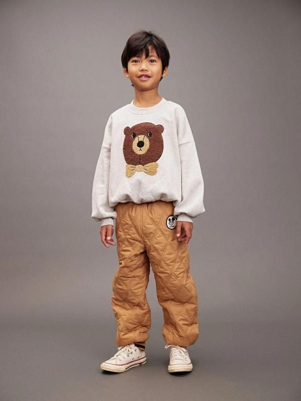クマのパッチワークが印象的な、3シーズン使いやすいスウェットです。