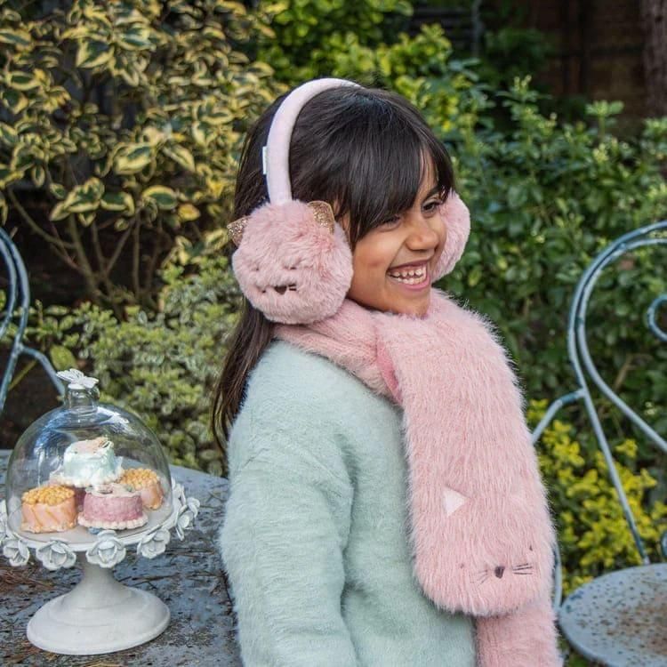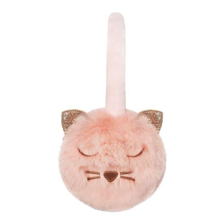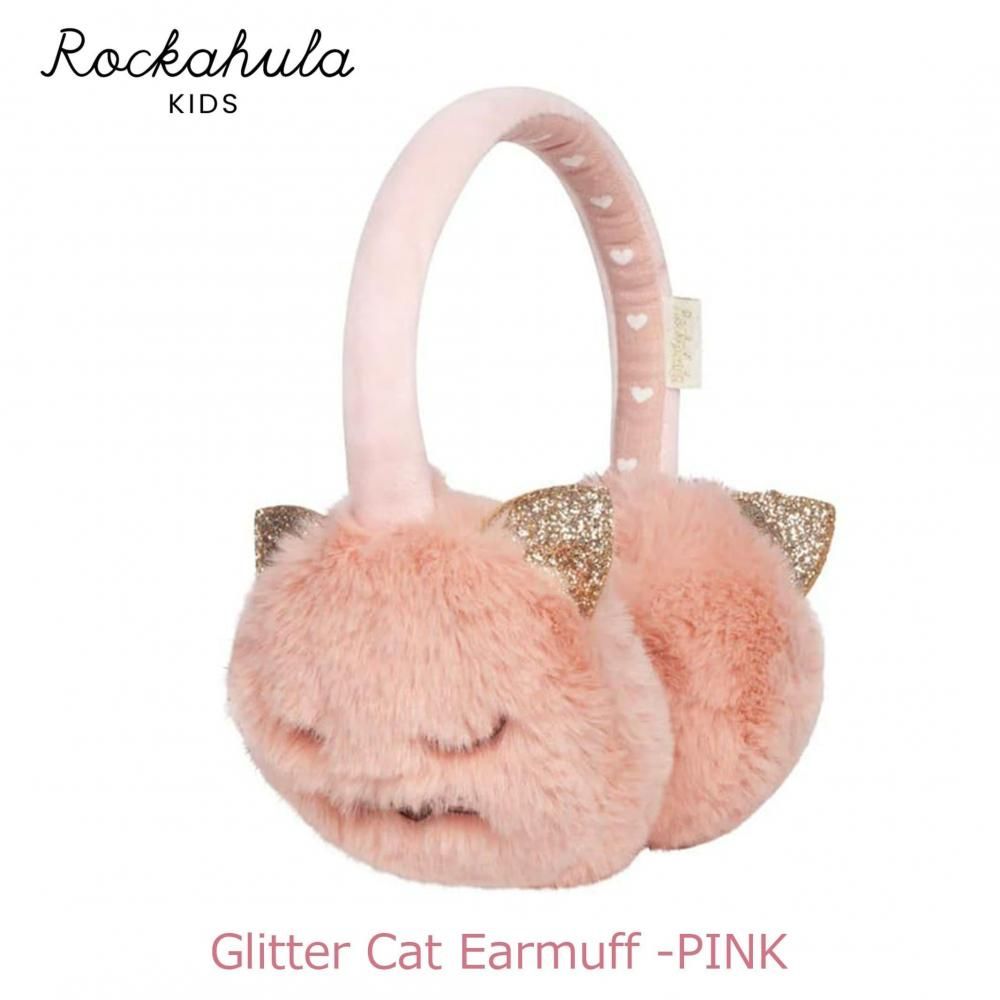 淡いピンクの猫ちゃんにキラキラのグリッターが敷き詰められた猫耳が可愛いイヤーマフです。