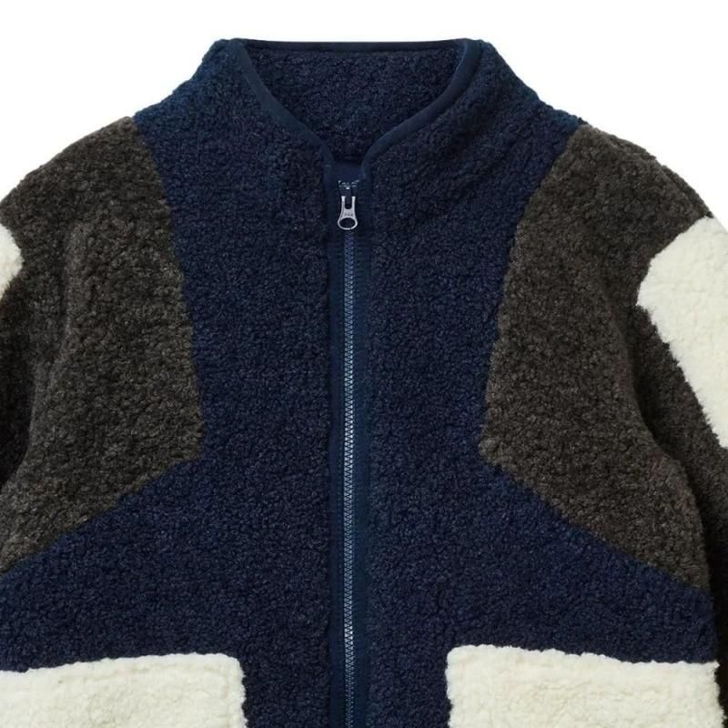 配色がかわいいカラフルなフリース素材のアウター。