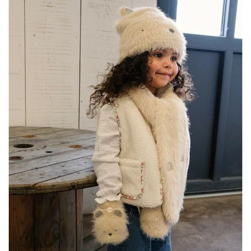 モヘアのようなファブリックを使用しており、かわいいクマをモチーフにしたキュートなデザインです。ギフトにもおすすめです。