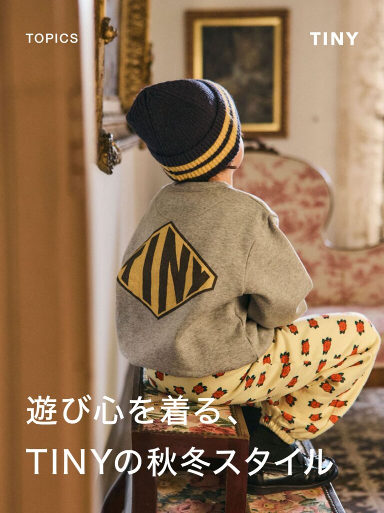 カラフルなもこもこアウターはもちろん、SOLIDなスウェットスタイルも今シーズンは大人気!冬の寒い日もTINYの遊び心あふれるデザインとカラーで思いきり楽しく過ごせそう。